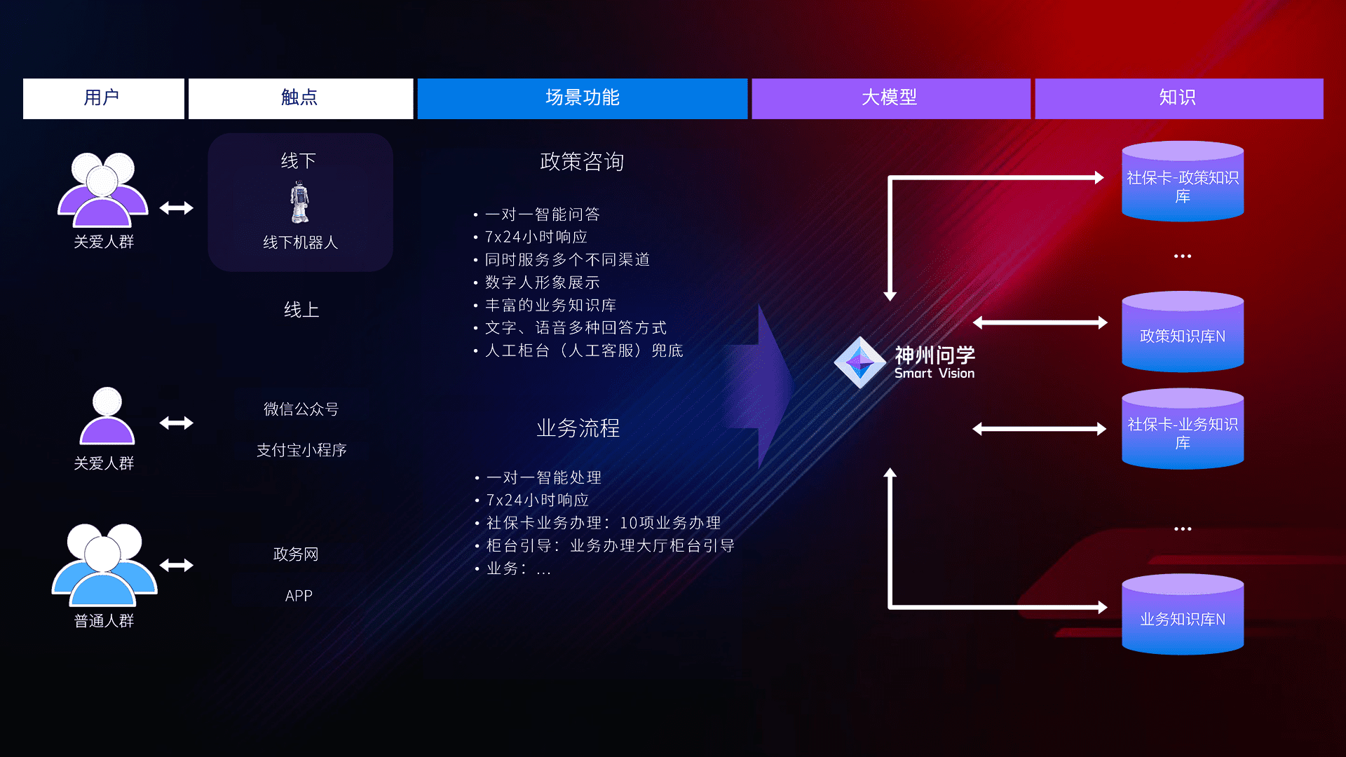 • 线上线下全覆盖:线上提供微信公众号、、、支付宝小程序、、、政务网、、app多种渠道,,与线下机器人形成完整服务体系。。。